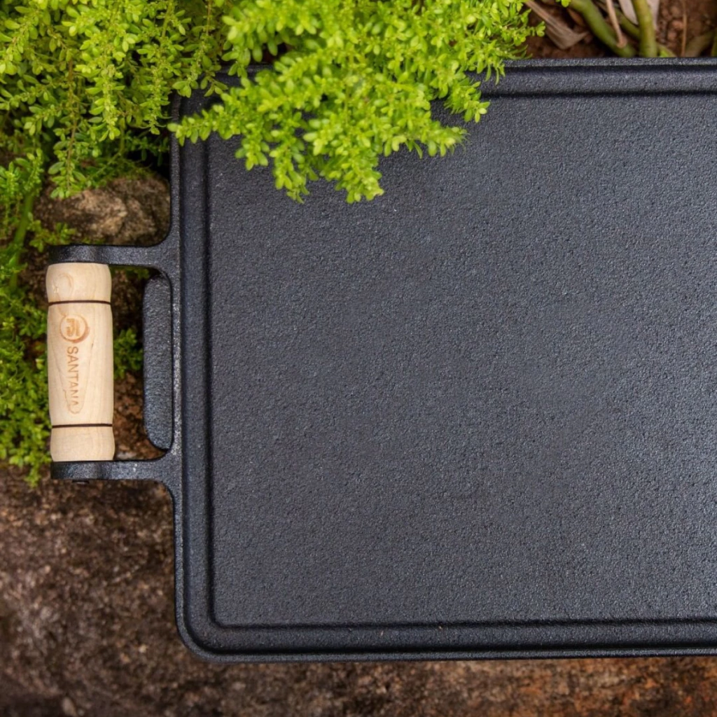 Um dos inúmeros benefícios da bifeteira de ferro fundido lisa com cabo de madeira da Santana, é que esta pode ser usada em diferentes tipos de fogão, sejam eles a gás, a lenha ou elétricos. Assim, você compreende a vantagem de investir em sua própria bifeteira de ferro, já que com ela você consegue preparar uma ampla lista de opções de receitas, com o máximo de versatilidade, praticidade e eficiência garantidas. Outro diferencial da bifeteira de ferro, assim como os demais produtos da Santana, é que este conta com acabamento revestido com óleo 100% vegetal, por meio de um processo que é totalmente natural, ou seja, livre de substâncias químicas, contribuindo não só com o cuidado com a sua saúde, mas também com a preservação do meio ambiente de forma consciente e sustentável.
