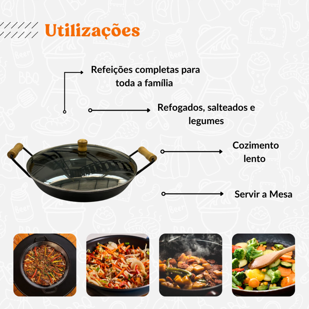 Fabricado em aço carbono de alta qualidade, o disco de arado retém o calor de forma excepcional, garantindo um cozimento uniforme e resultados sempre crocantes. O fogareiro portátil, leve e fácil de transportar, permite que você prepare suas criações culinárias onde quer que esteja, do campo ao quintal.