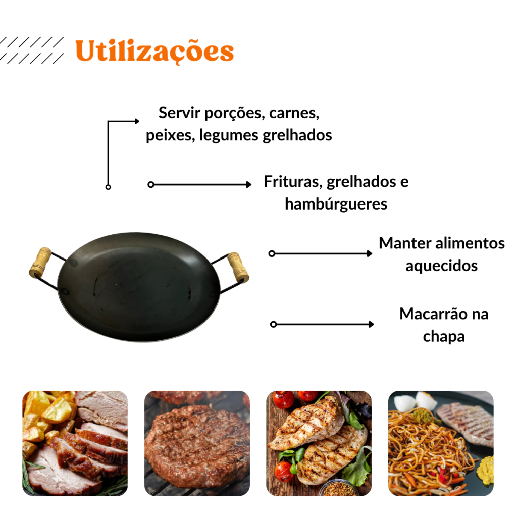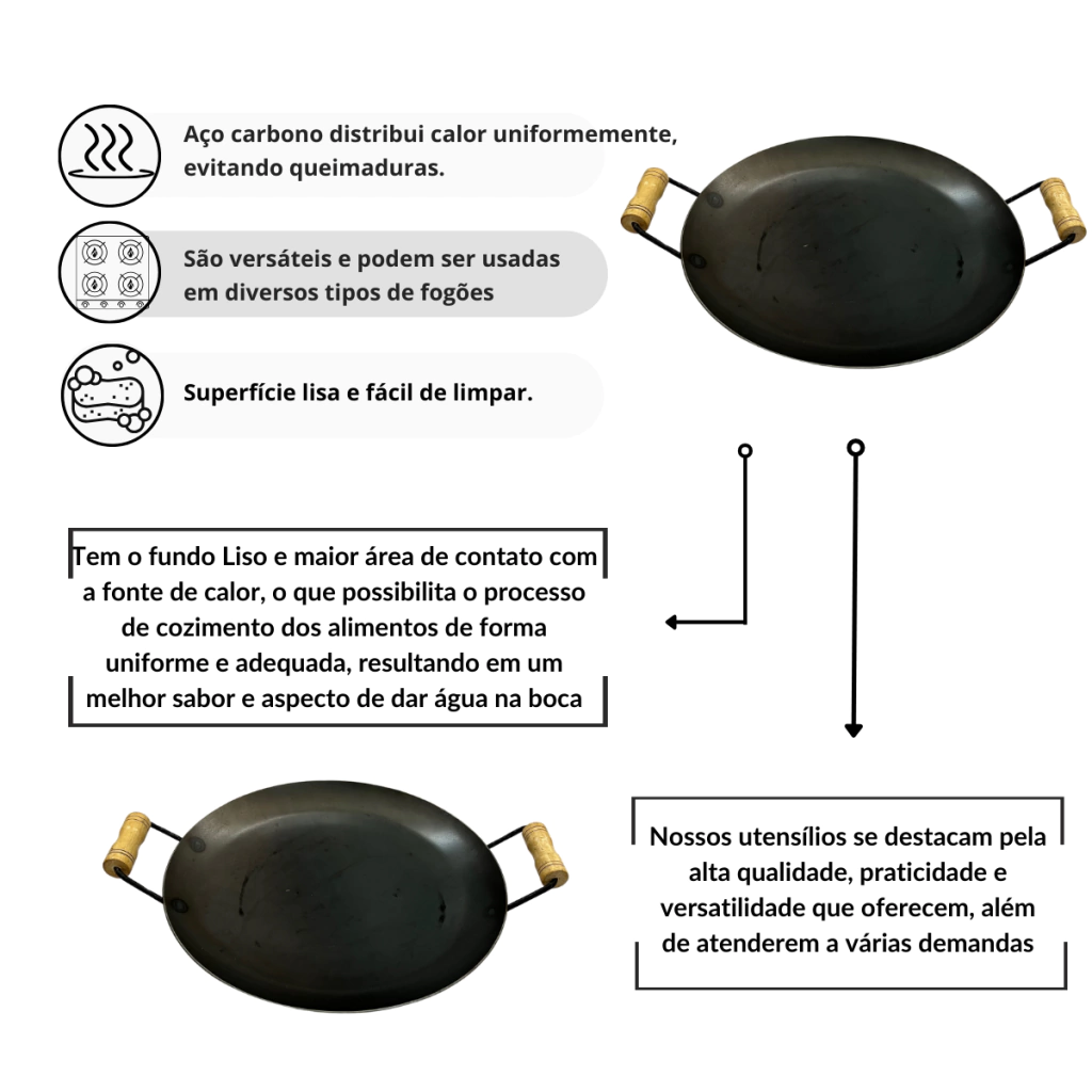 Fabricado em aço carbono de alta qualidade, ele retém o calor de forma excepcional, garantindo um cozimento uniforme e resultados sempre crocantes. Seu design prático facilita o transporte e o transporte, permitindo que você leve suas criações culinárias do forno à mesa.