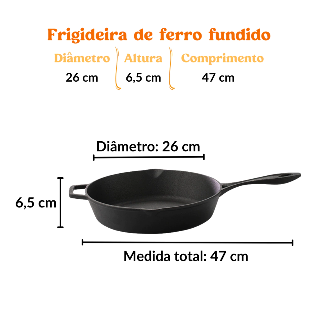 Este novo modelo de frigideira de ferro, além de acrescentar mais beleza a sua mesa e facilidade no preparo dos pratos, também conta com garantia de qualidade, resistência e durabilidade. Além de contribuir para uma alimentação mais saudável, devido a sua capacidade natural de transferência de porcentagens significativas de ferro para os alimentos preparados nela.