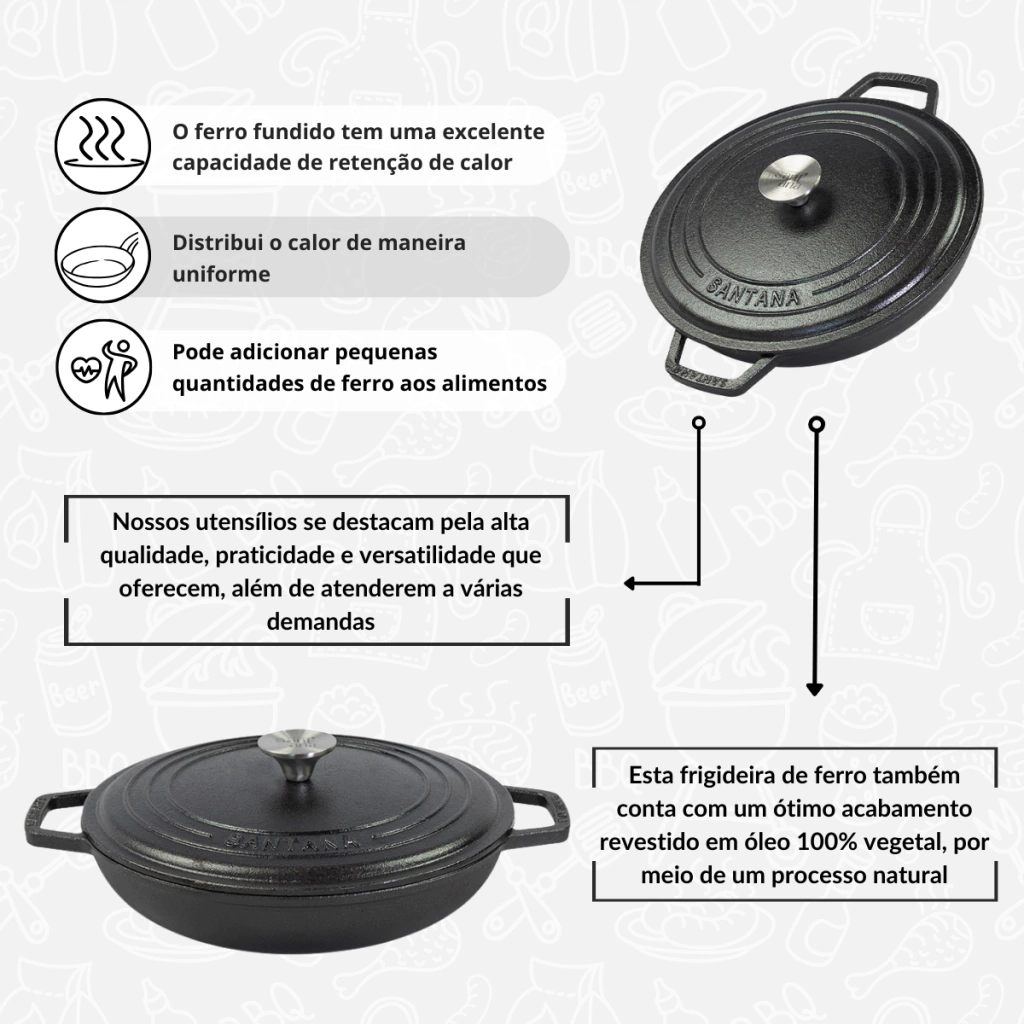 Com a frigideira sautoir de ferro fundido com tampa, você tem uma peça versátil e elegante que durará por muitos anos, proporcionando resultados deliciosos e consistentes a cada uso.