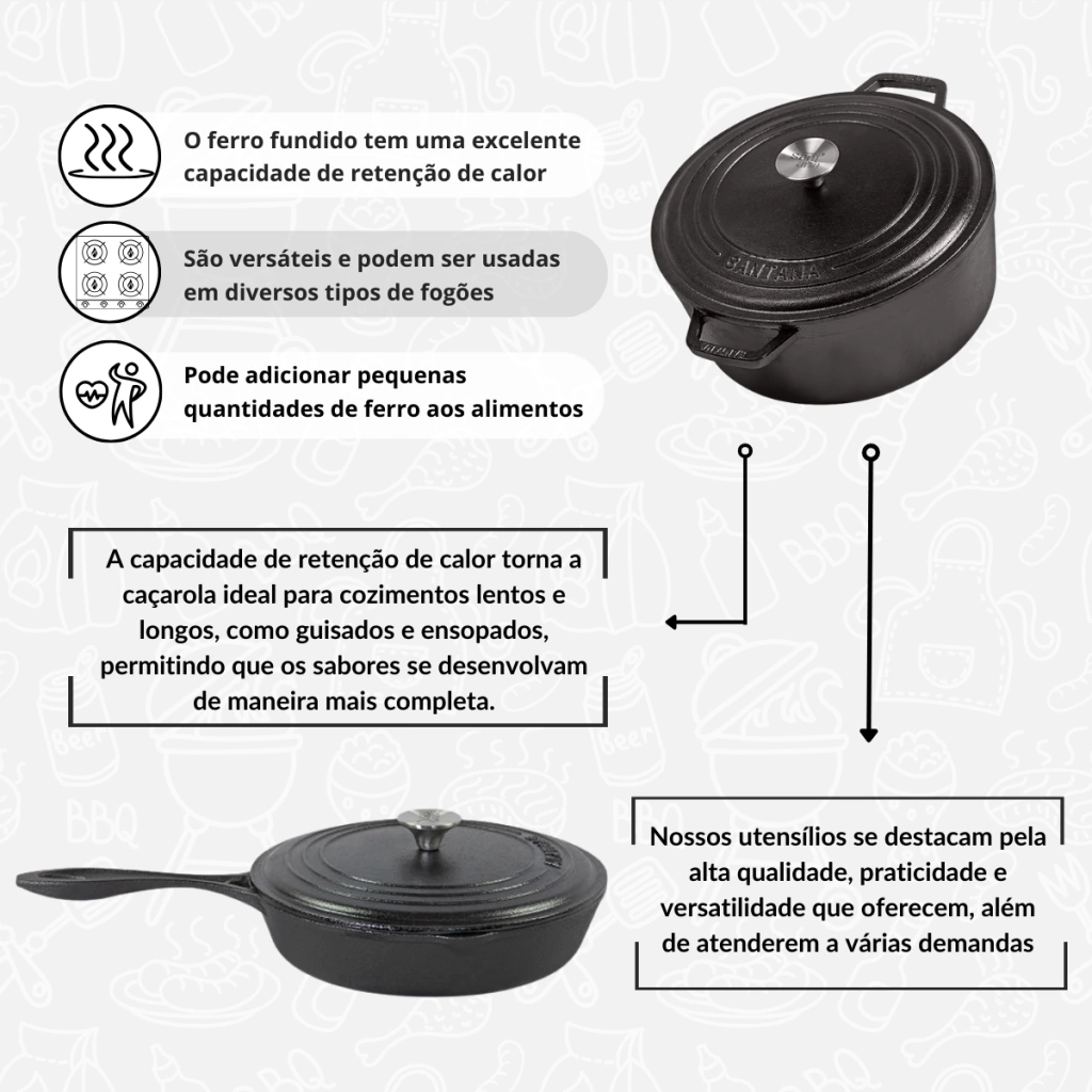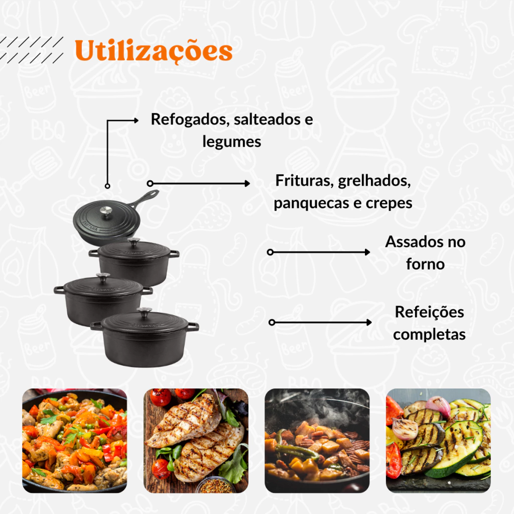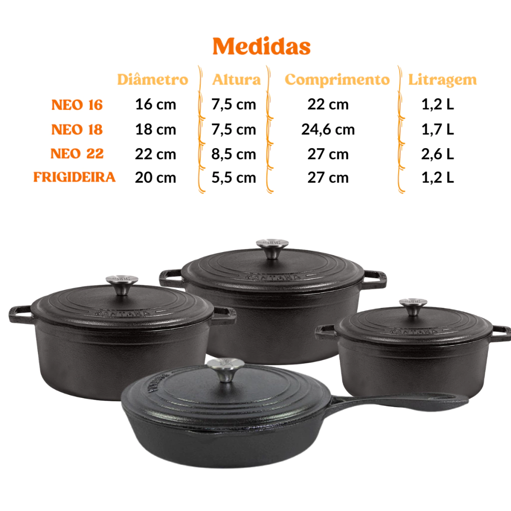 Jogo de Panelas NEO de Ferro Fundido com Alça de Ferro - Versatilidade e Durabilidade na Sua Cozinha!