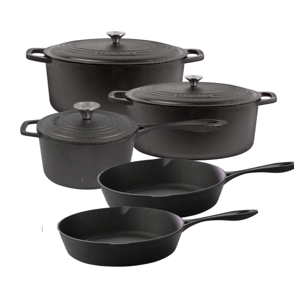 Transforme sua Cozinha com o Sabor Autêntico do Jogo de Caçarolas e Frigideira de Ferro Fundido.