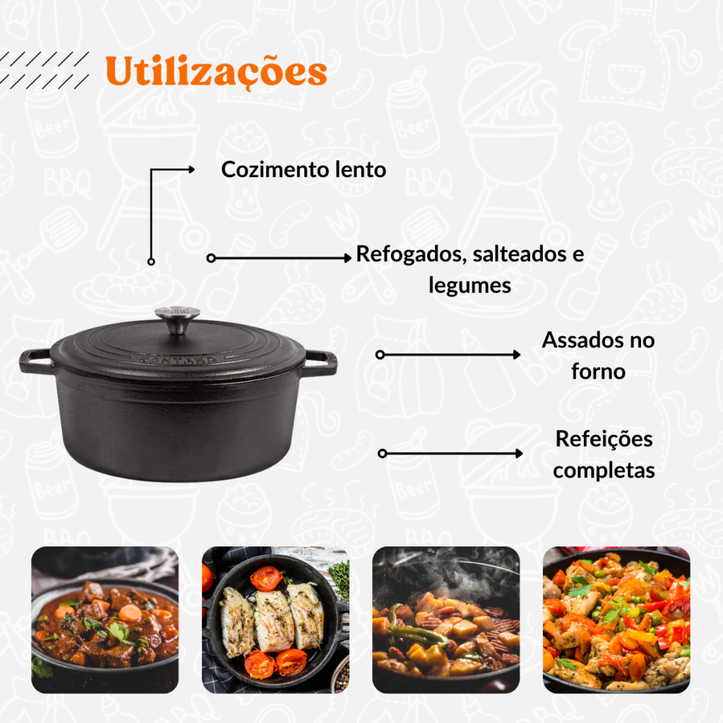 Quem gosta de cozinhar sabe o quanto uma caçarola de ferro é indispensável na cozinha né? Pois então, você não pode deixar de investir em uma! Quer uma dica para escolher? A Caçarola Neo, fabricada pela Santana é uma ótima opção, já que conta com uma tampa de ferro fundido de cor preta, constituída por 2 alças feitas de material durável e resistente, toda feita em ferro, apta para ir ao forno, sendo também usada de maneira versátil, como assadeira!