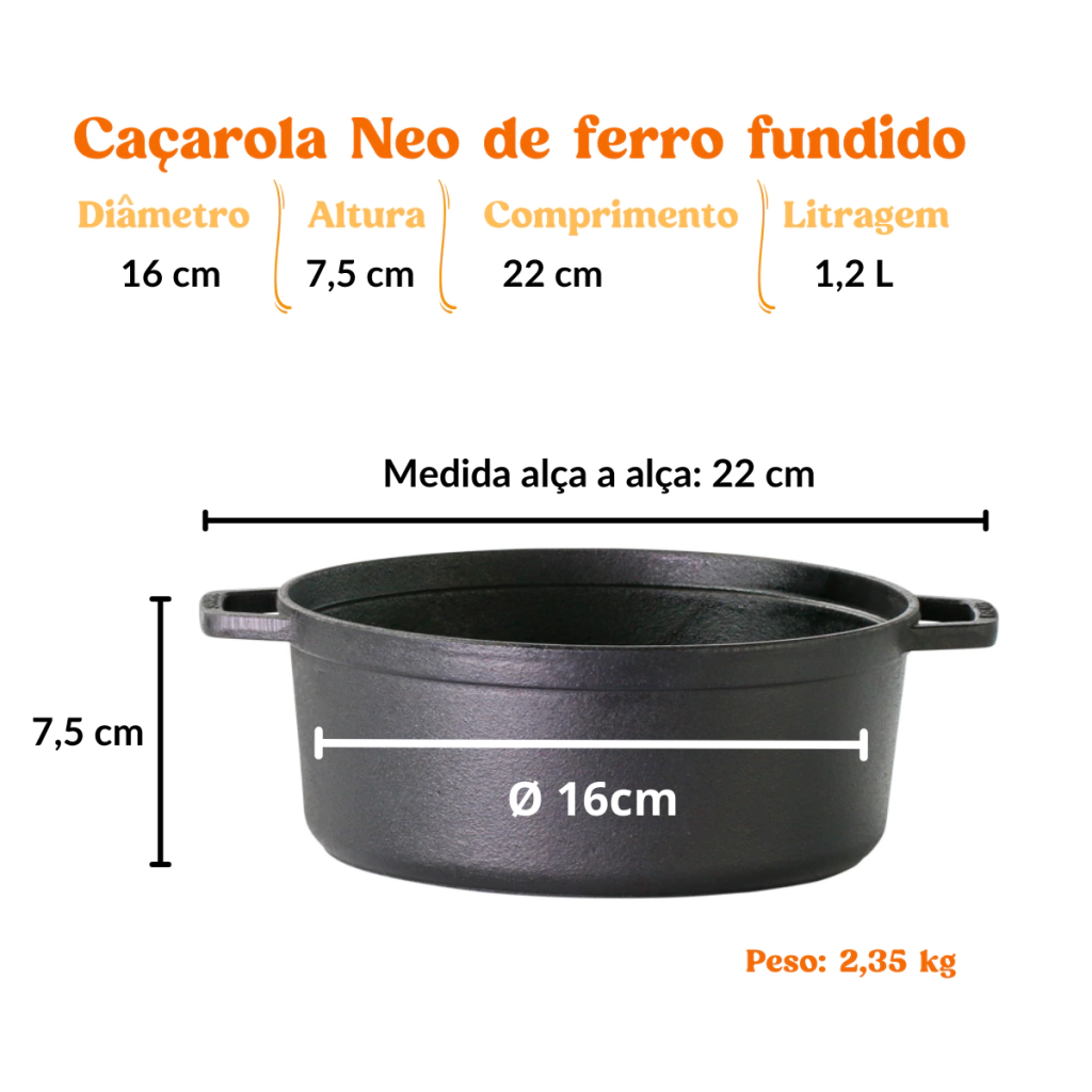 Tamanho da Panela (Diâmetro x Comprimento x Altura):16Ø x 22 x 7,5cm