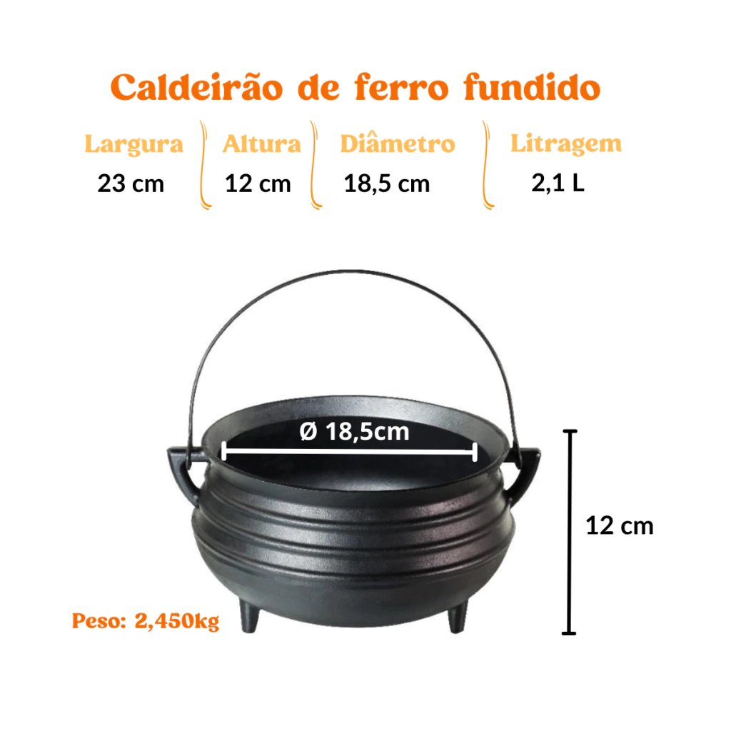 A panela caldeirão tripé de ferro é ideal para preparar feijão, caldos, ensopados e até mesmo pratos doces, o caldeirão de ferro proporciona uma alimentação mais saudável e faz com que o preparo das receitas seja ainda mais prático